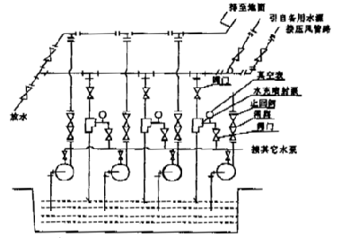 單臺水泵的安裝,每臺噴射泵只對該臺水泵進行吸氣吸上引水。