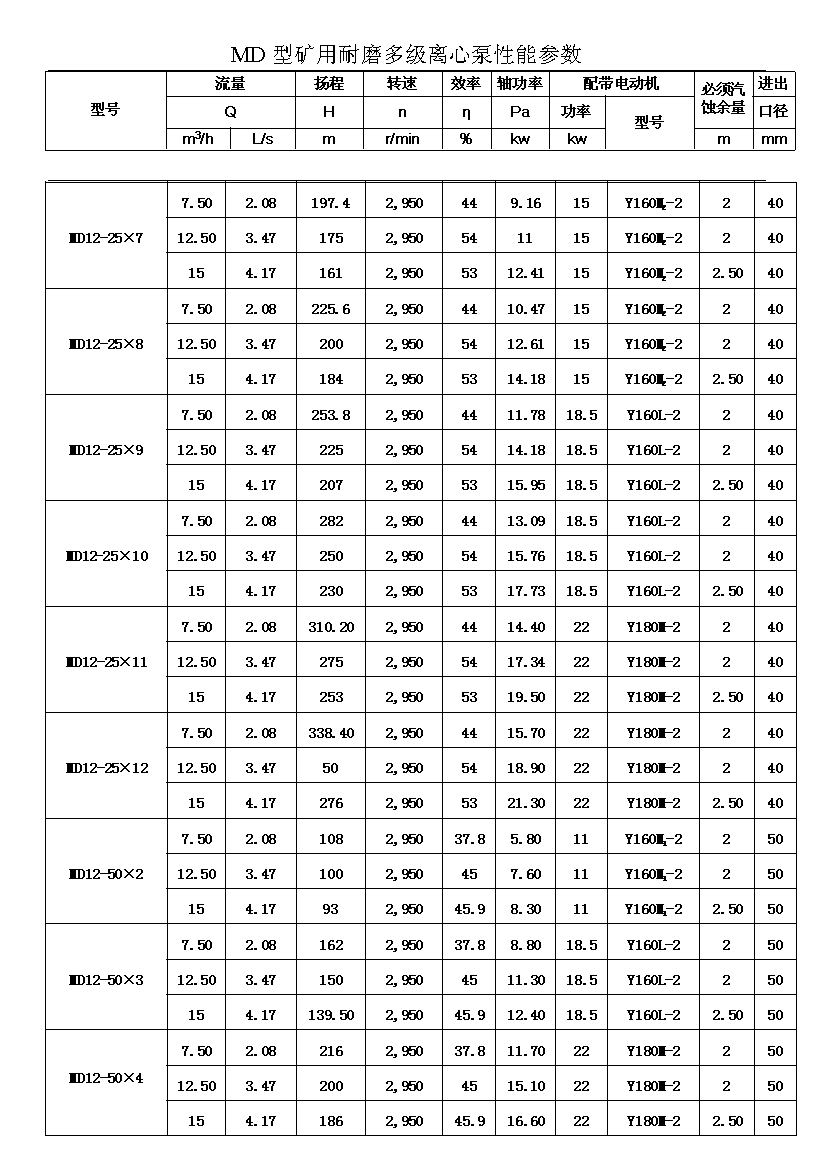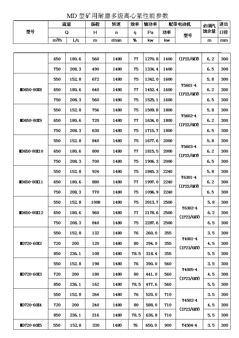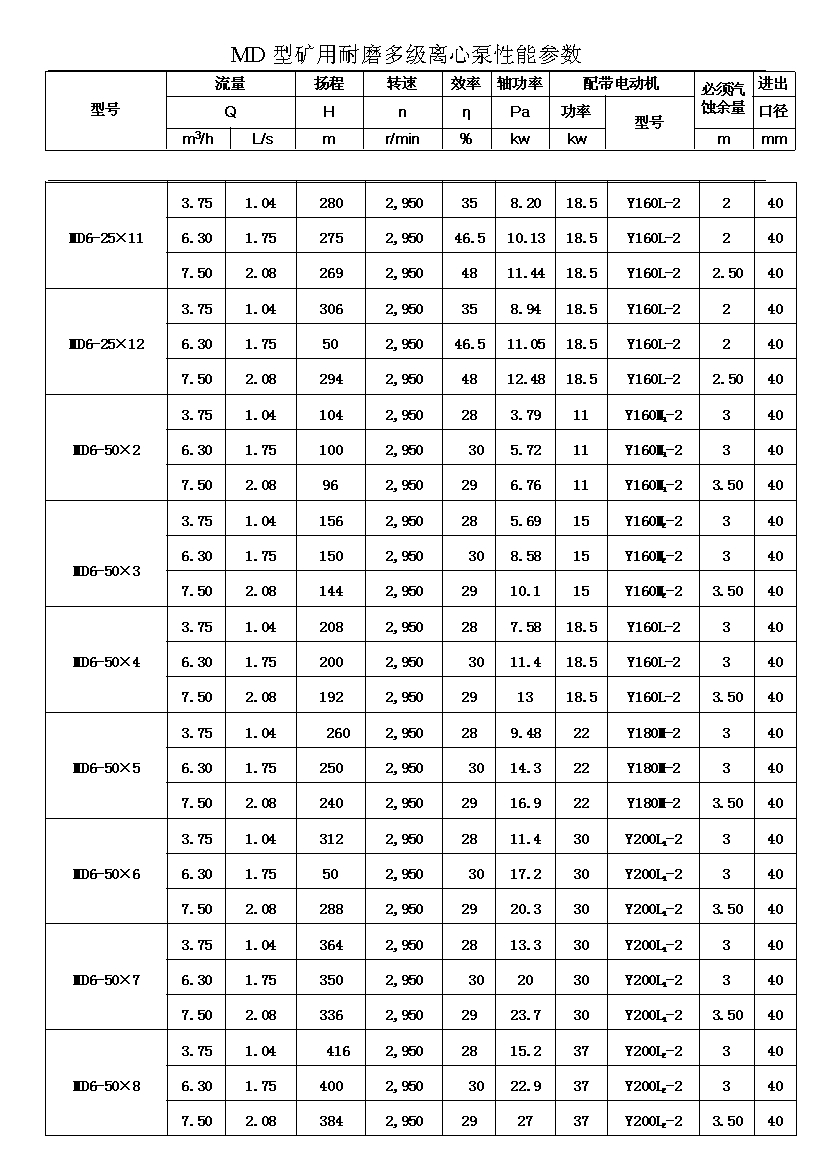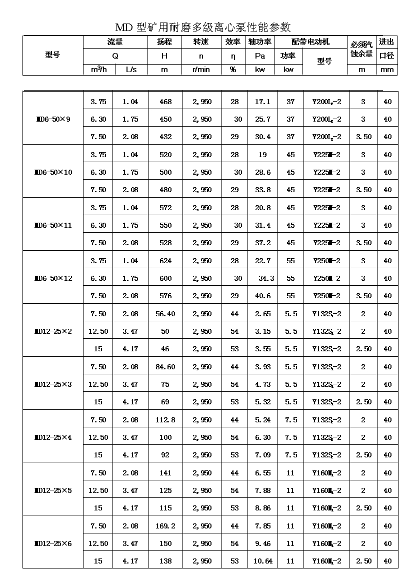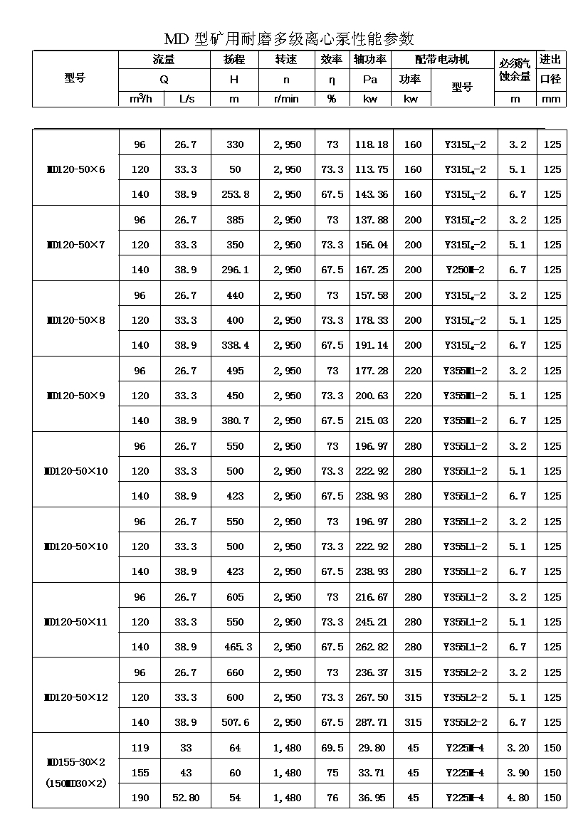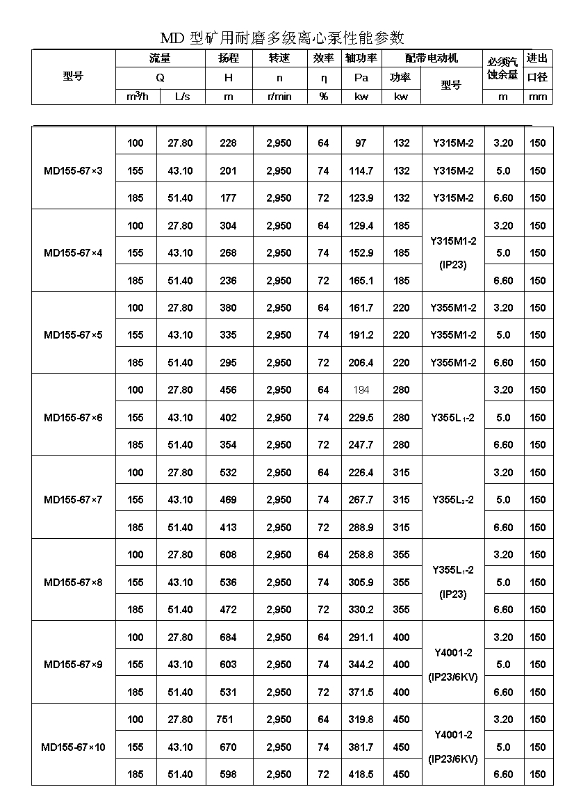 MD型耐磨多級(jí)離心泵,是我公司在D型單吸多級(jí)清水離心泵的基礎(chǔ)上,改造設(shè)計(jì)的一種耐磨多級(jí)離心泵。MD型耐磨多級(jí)離心泵,高效節(jié)能,耐磨可靠,壽命長, 特別適用于礦山排水,抽送固體顆粒含量不大于1.5%(顆粒直徑小于0.5毫米)的礦井水及其他類似液體,液體溫度不高于80度。